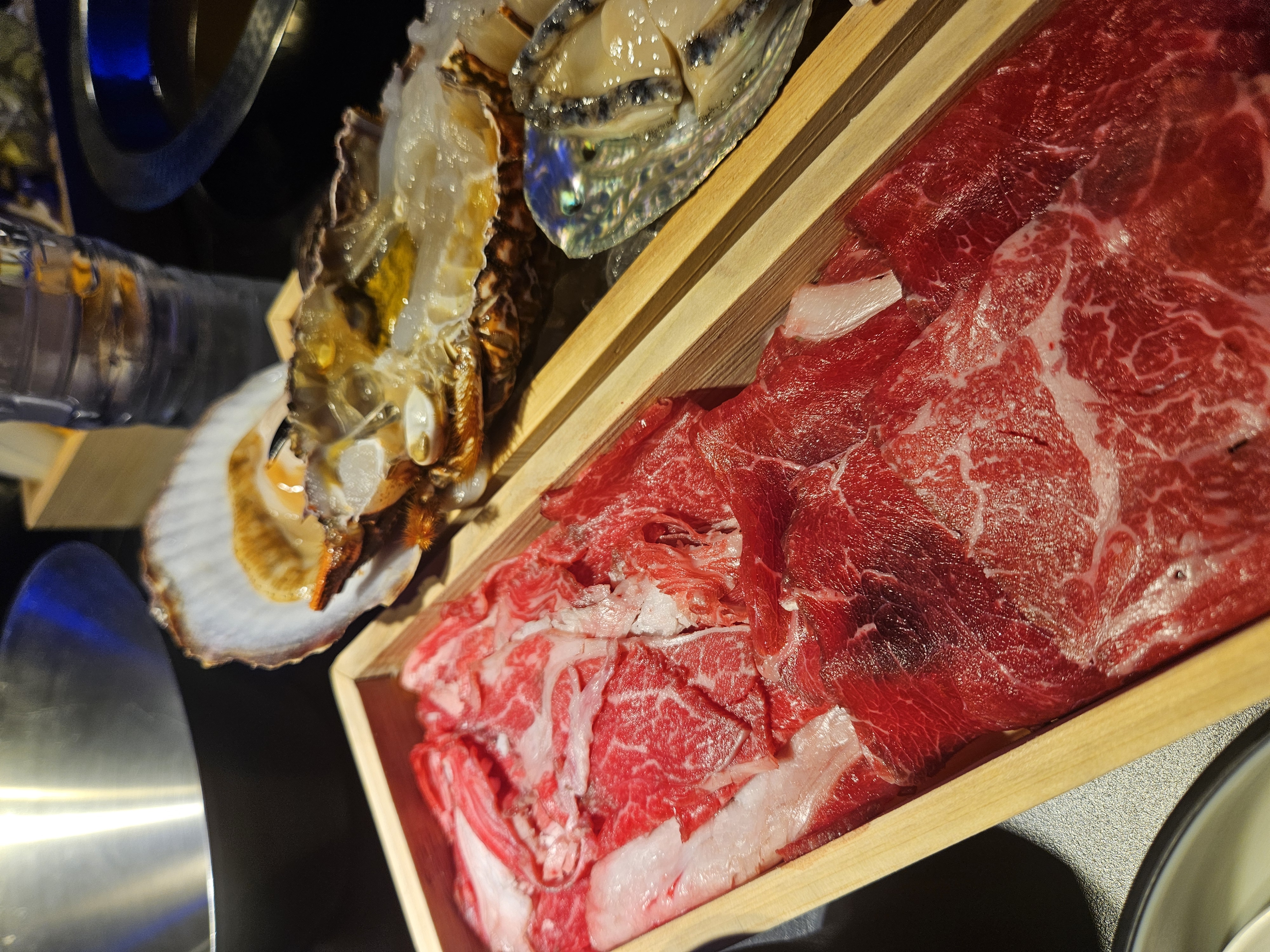 개인 육수 선택, 해산물과 소고기도 개인별로 준비가 되어요.