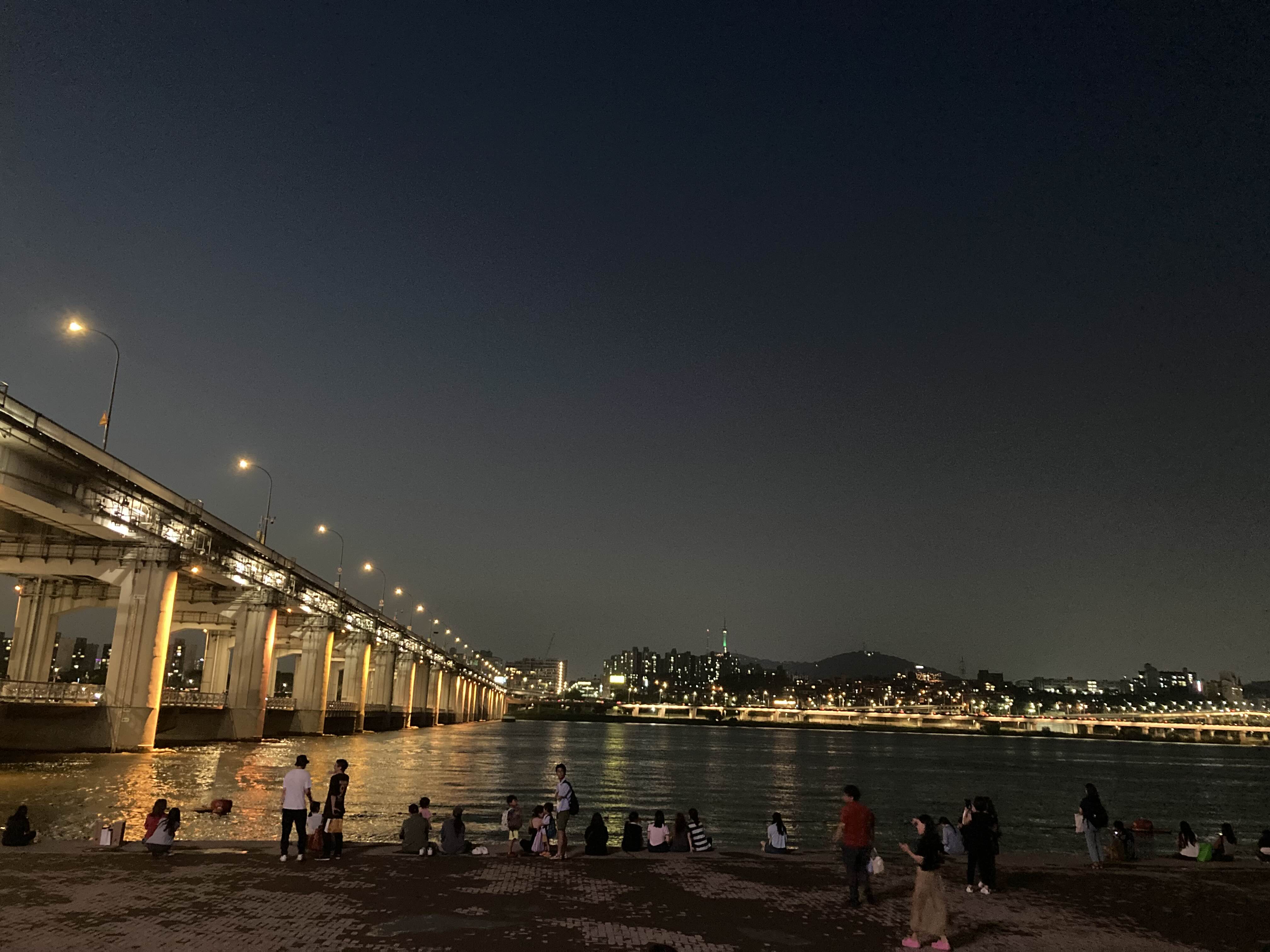 아직 여름밤이고 열대야가 지속되는 시기이지만, 많은 사람들이 한강에 모였습니다.
