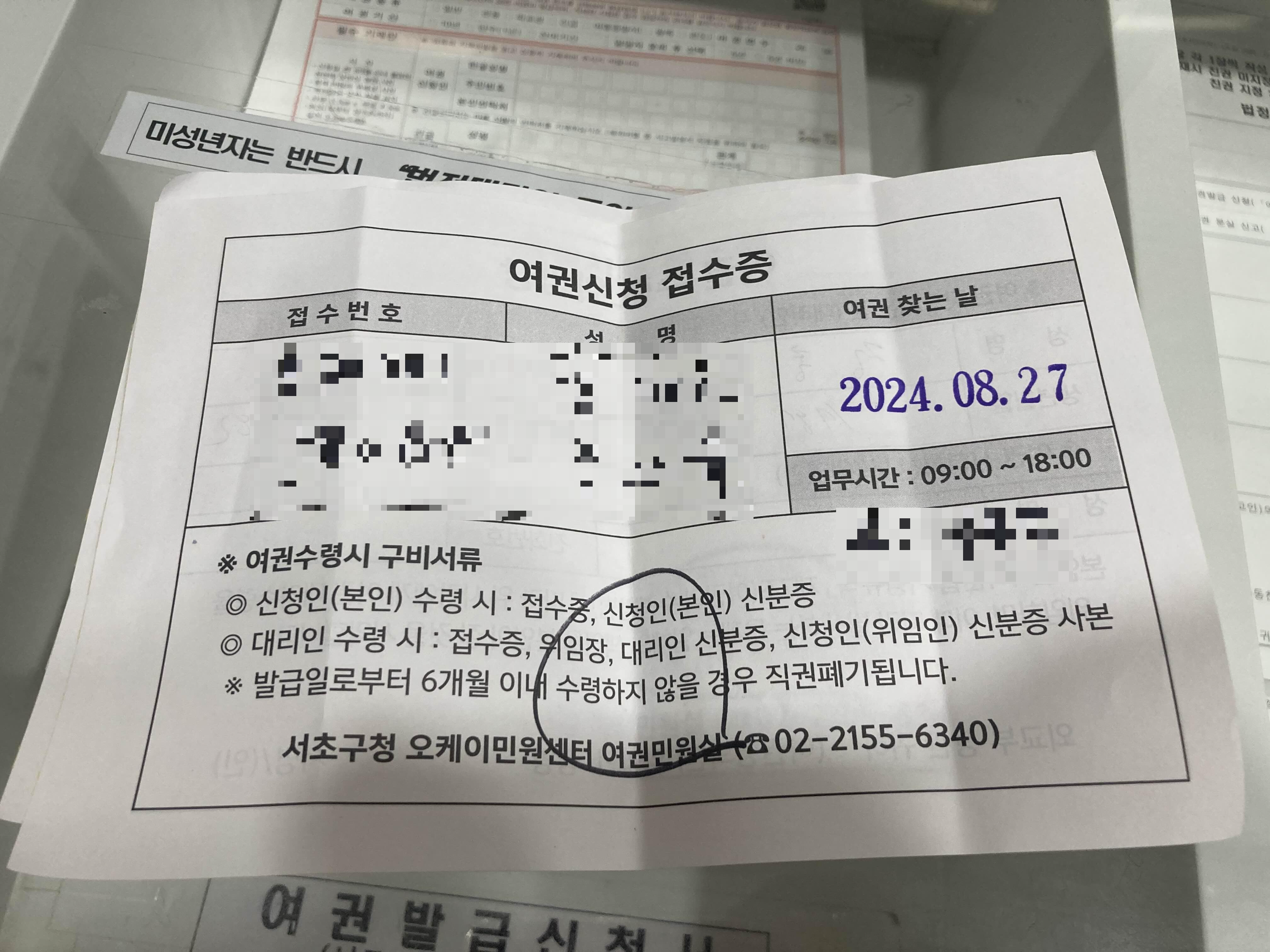 미성년자녀 여권을 수령하러 서초구청에 다녀 왔습니다.