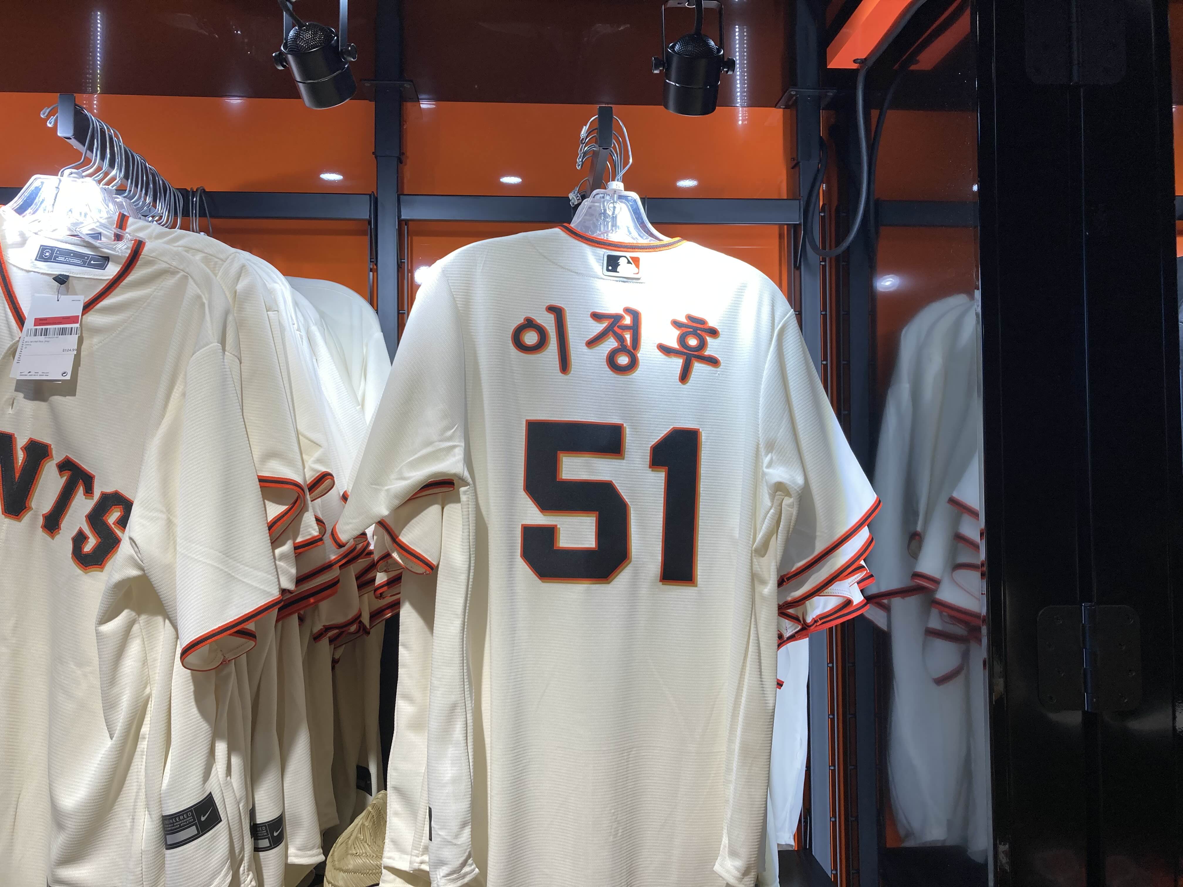 경기장 내부로 들어오니 유니폼 판매하는 샵이 보입니다. 그곳에는 자랑스러운 키움히어로즈 출신 이정후 선수의 유니폼이 한글로 전시되어 있습니다. 부상만 아니였어도 오늘 직관의 의미가 더욱 깊어졌을텐데 아쉽습니다.