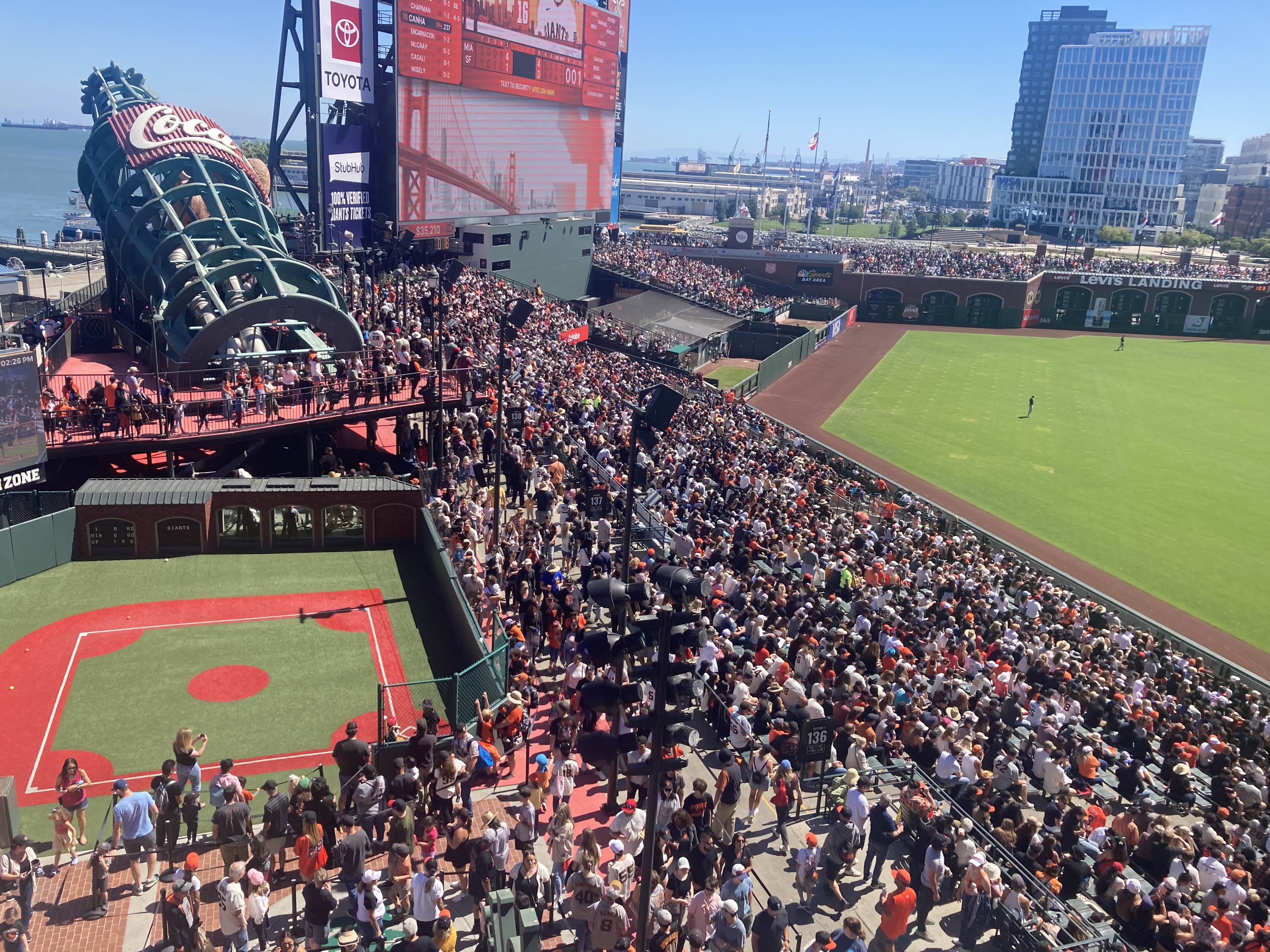 외야에서 바라보는 오라클파크 모습입니다. 진짜 관중들이 꽉 찼네요.