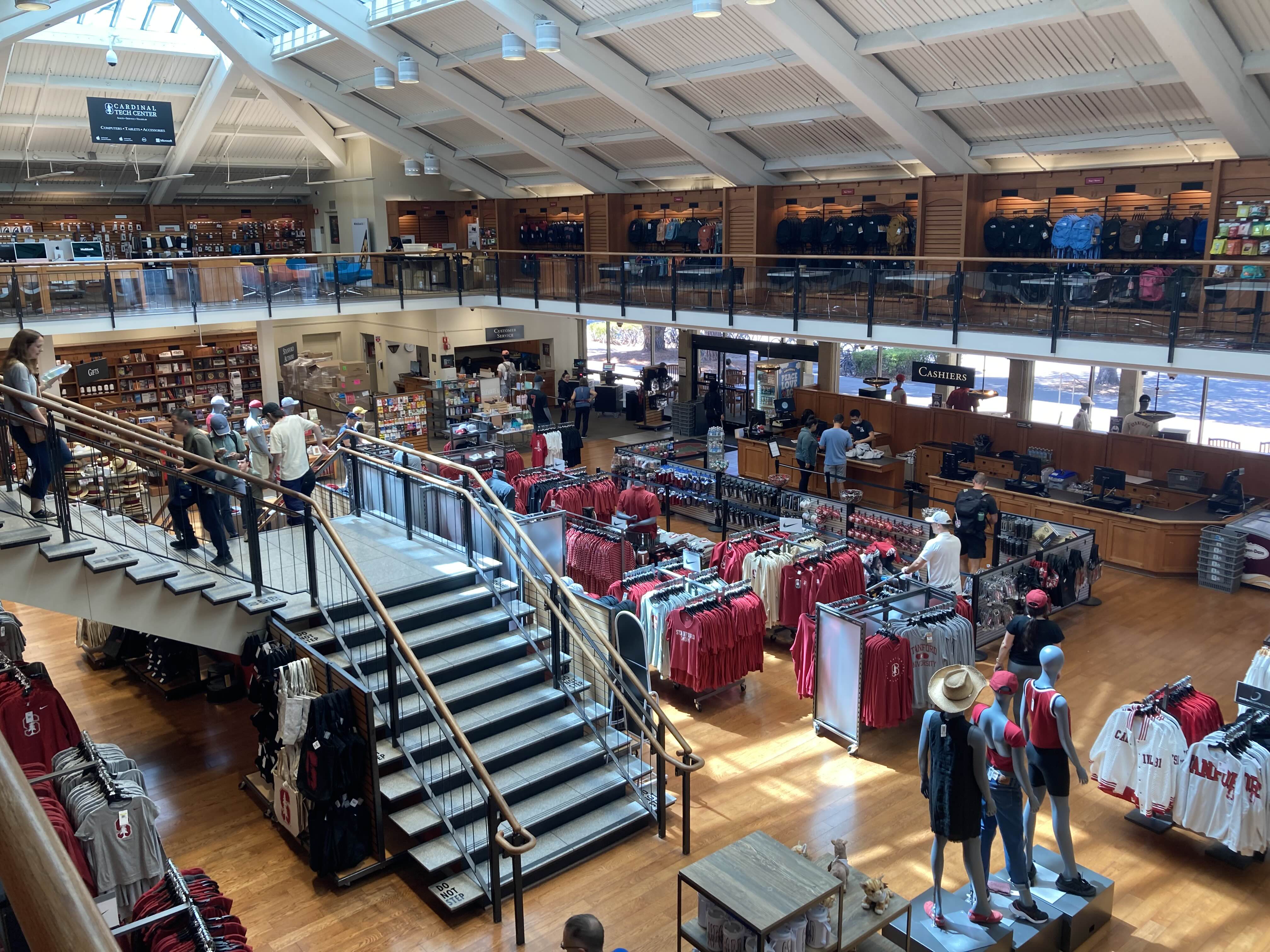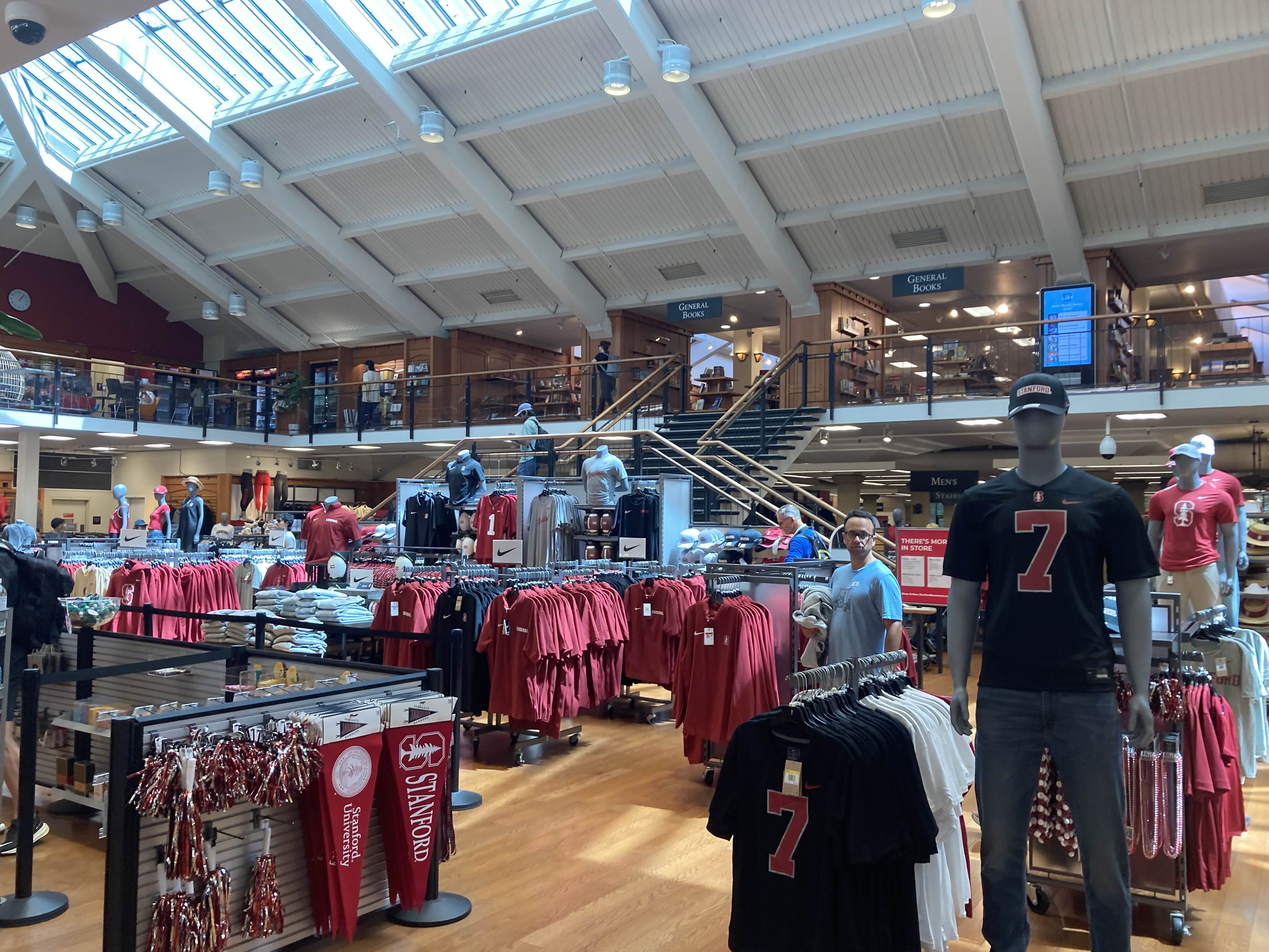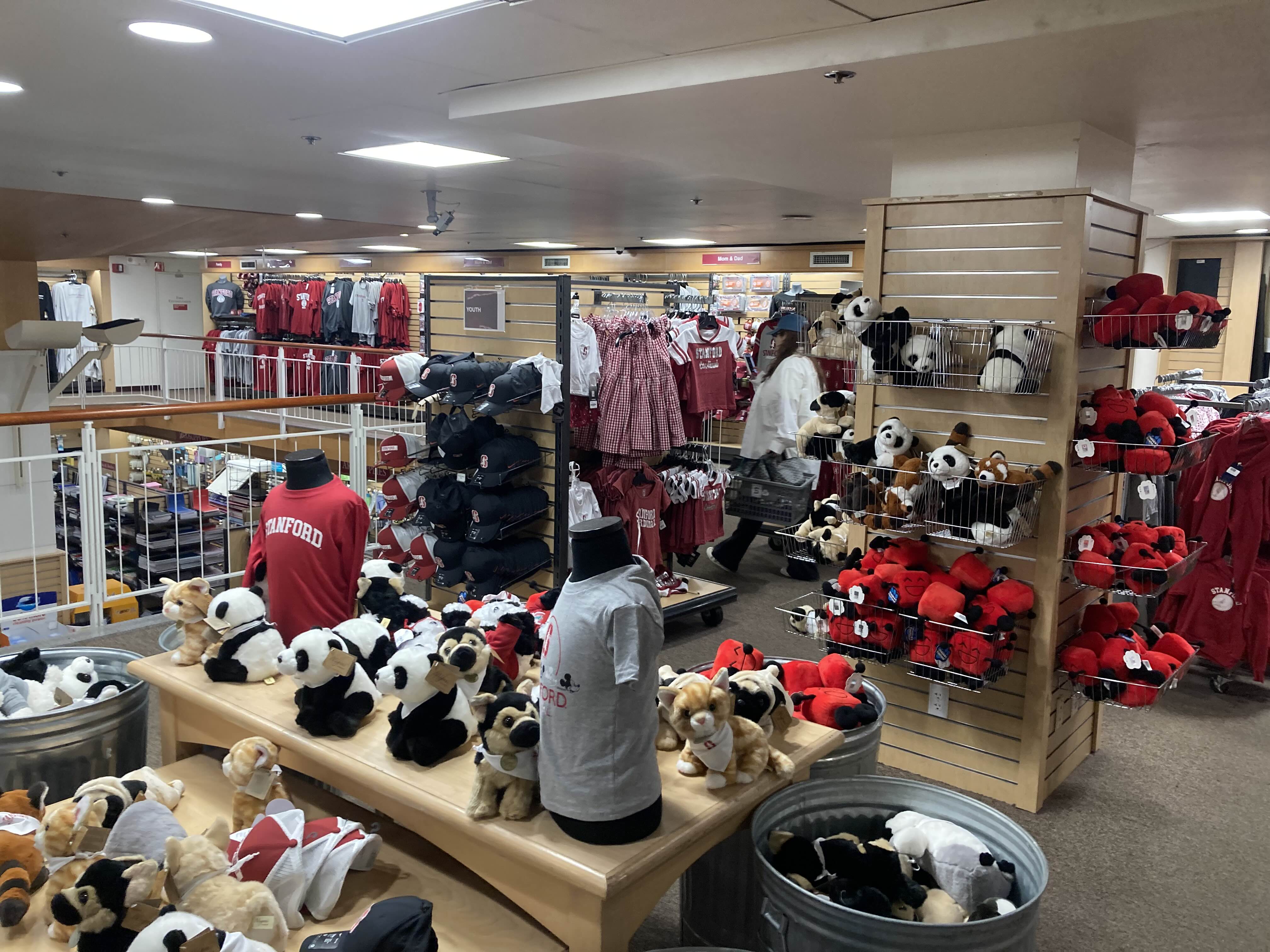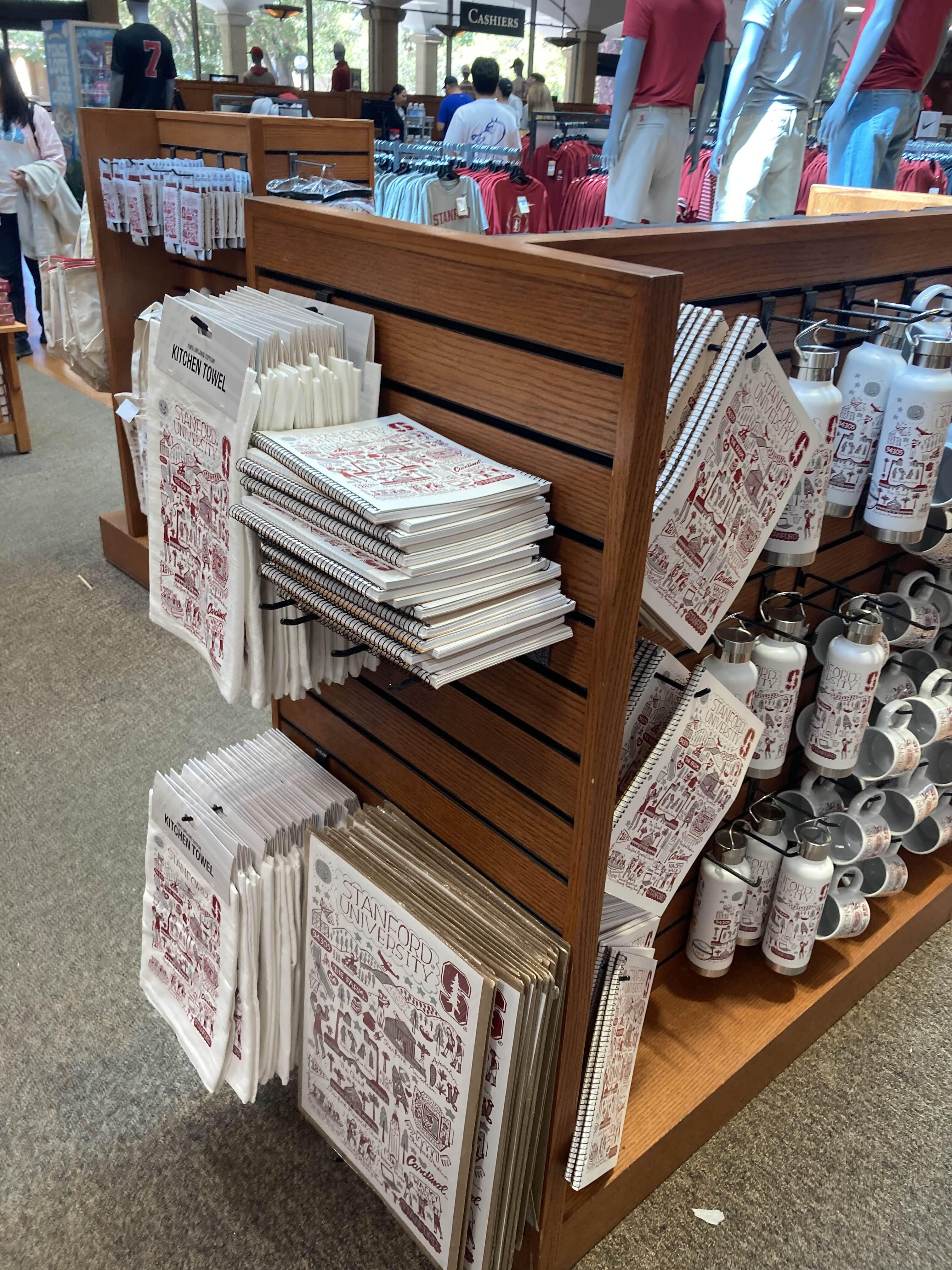내부로 들어가니 더욱 넓은 기념품샵이 보입니다. 스탠포드의 상징인 빨강색과 소나무가 보이네요.