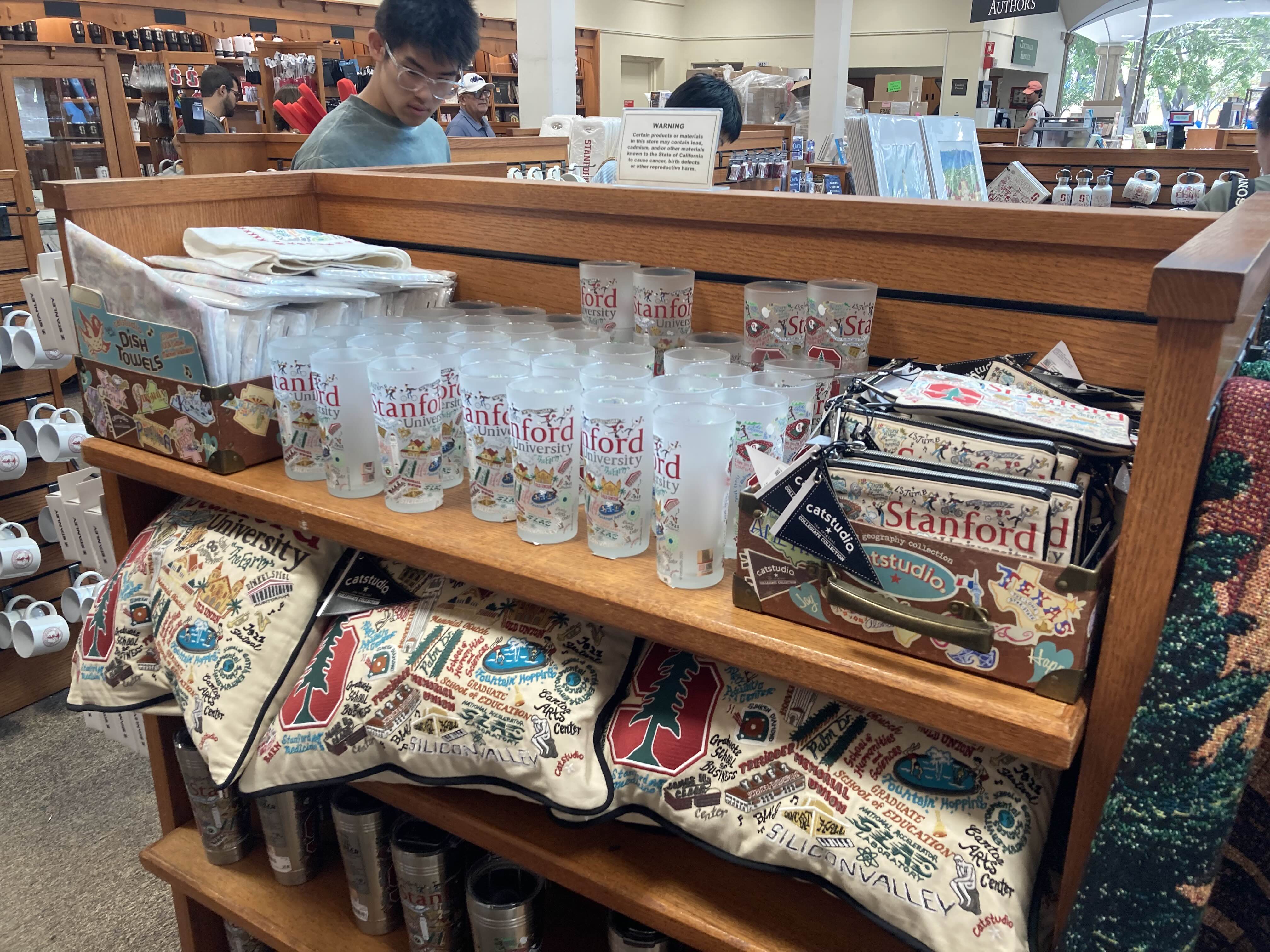 머그컵, 텀블러, 에코백, 공책, 볼펜, 인형, 쇼핑백, 컵받침, 마우스패드 등등... 정말 다양한 굿즈들이 기념품샵에 준비되어 있습니다. 사실 가격이 착하지는 않아요. 한국돈으로 환산하면 만원부터 5만 6만원까지... 그래도 언제 스탠포드대학교에 와보겠나요. 이럴때 작은거라도 하나 사가야 하는거죠 ㅎㅎㅎ