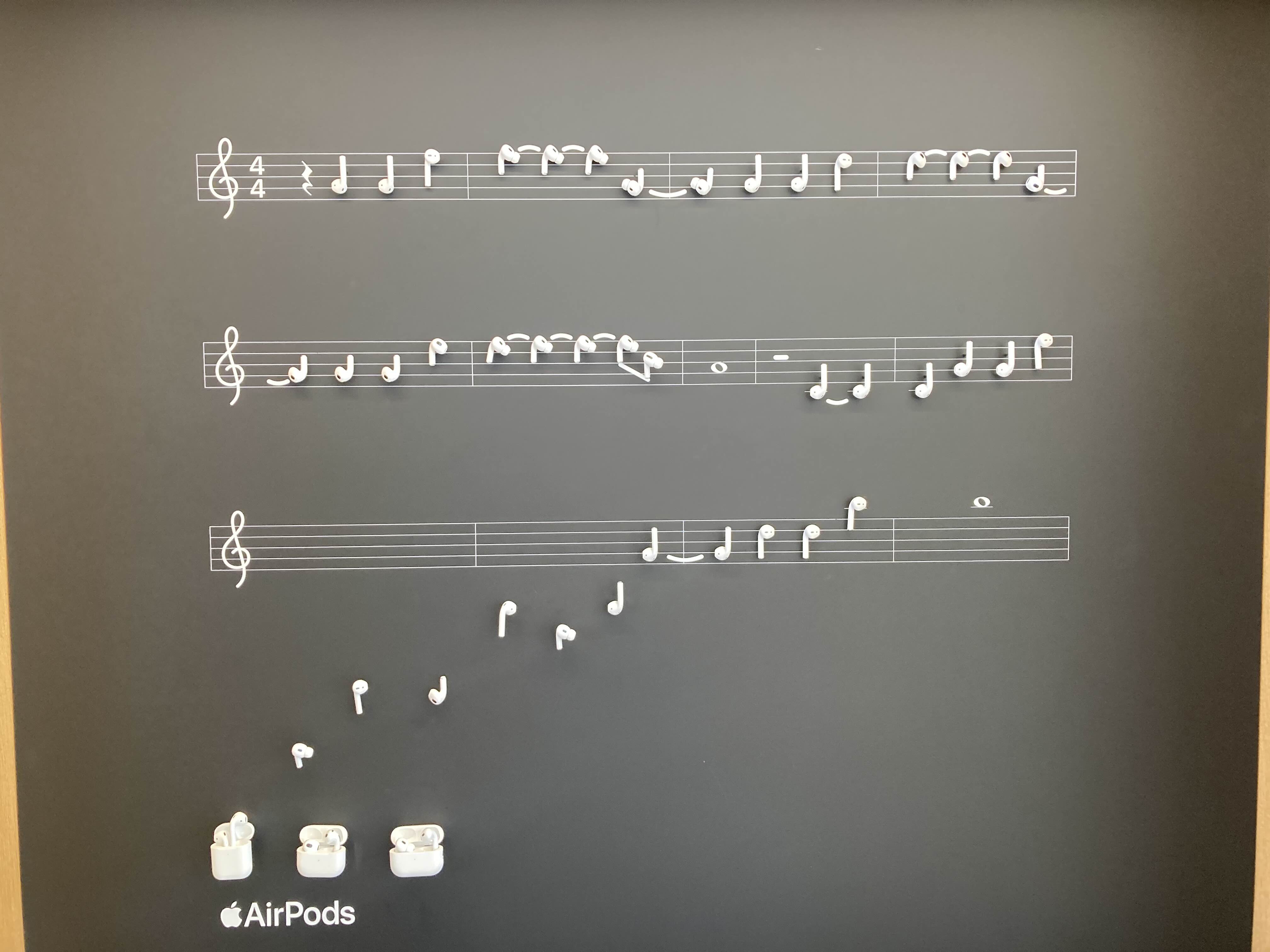 에어팟으로 만든 귀여운 음계표네요 ㅎㅎㅎ 음계표에 따라 음악이 에어팟을 통해서 나올것 같습니다.