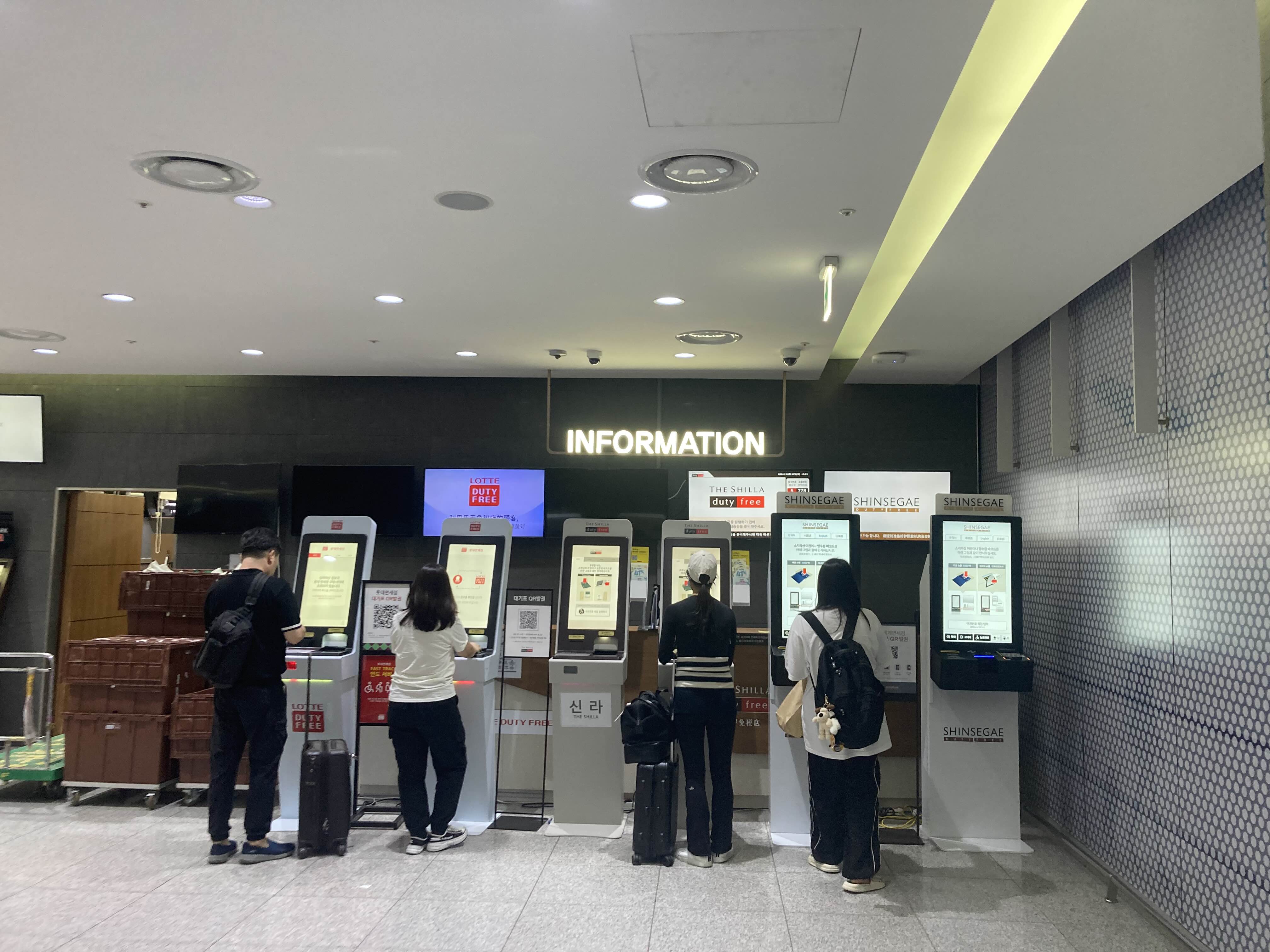 인천공항은 셀프체크인을 위한 키오스크가 잘 준비되어 있습니다.