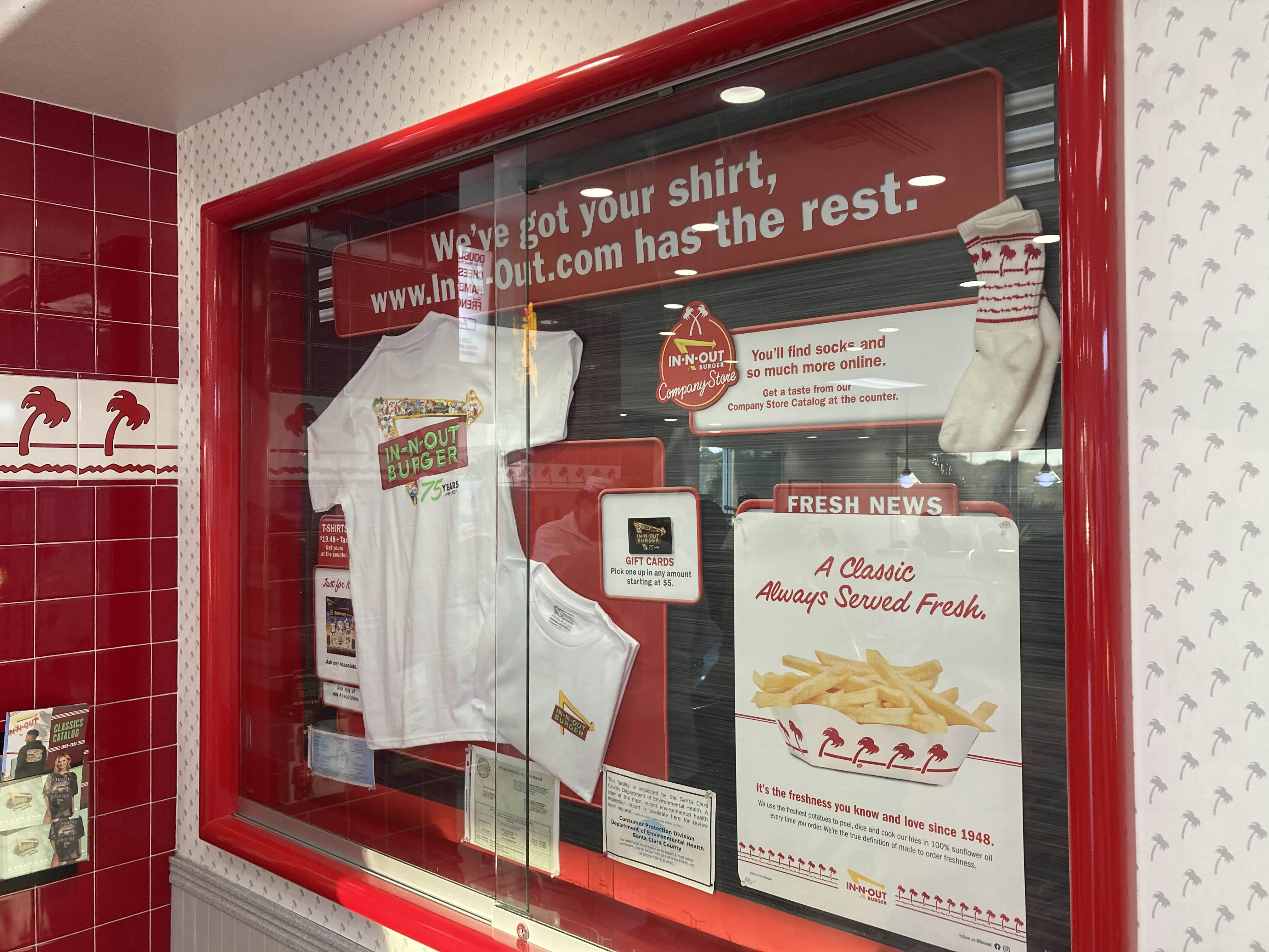 한쪽 벽면에는 인앤아웃의 굿즈를 판매하는 전시물도 있습니다. 인앤아웃 홈페이지에 들어가면 다양한 굿즈를 볼 수 있다고 하네요. 기념으로... 누군가 준다면 소장해볼만 할 것 같습니다. 내돈주고 사기는 좀....^^