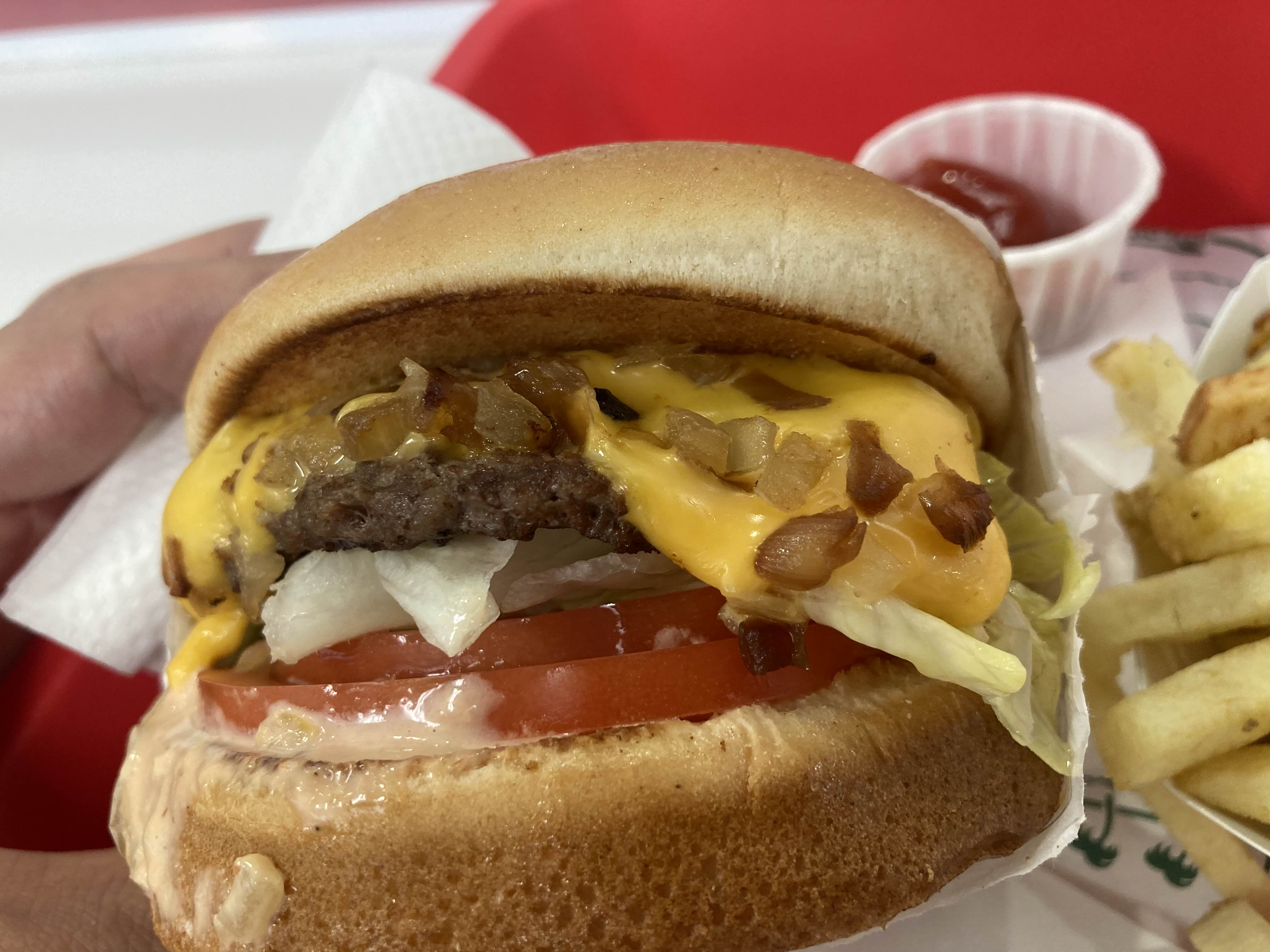 주문한 치즈버거와 프렌치프라이가 나왔습니다.