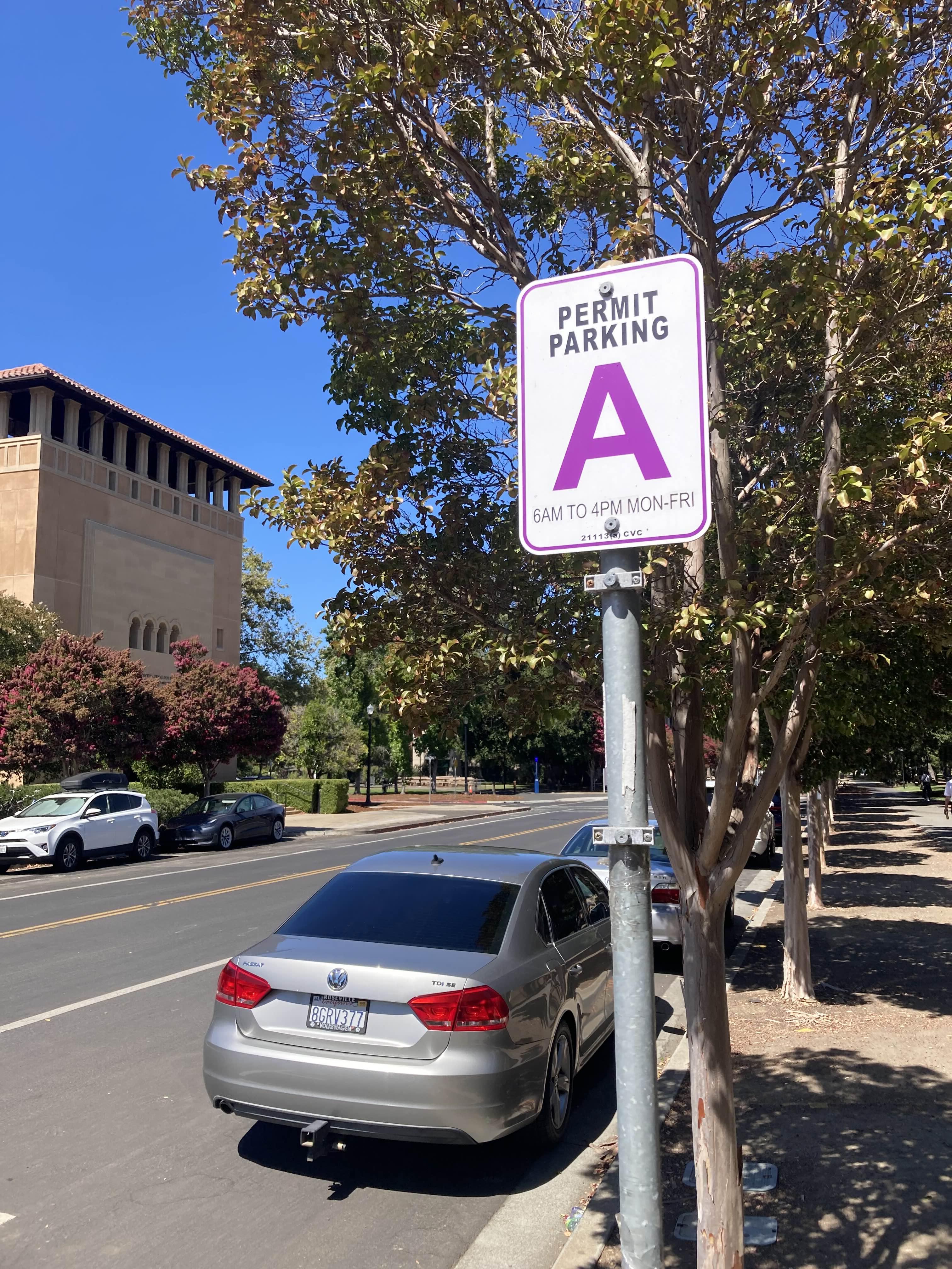 교내를 걷다보니 도로변에 주차를 많이 해놓았더라고요. 그래서 다시 차를 가지고 와서 여기에 주차를 해볼까 생각했었는데, 보라색 안내처럼 PERMIT PARKING 공간이였습니다. 물론 평일 06시~16시 였지만 괜히 문제되기 싫어서 그냥 비지터센터 주차장에 주차를 계속 해놨어요.