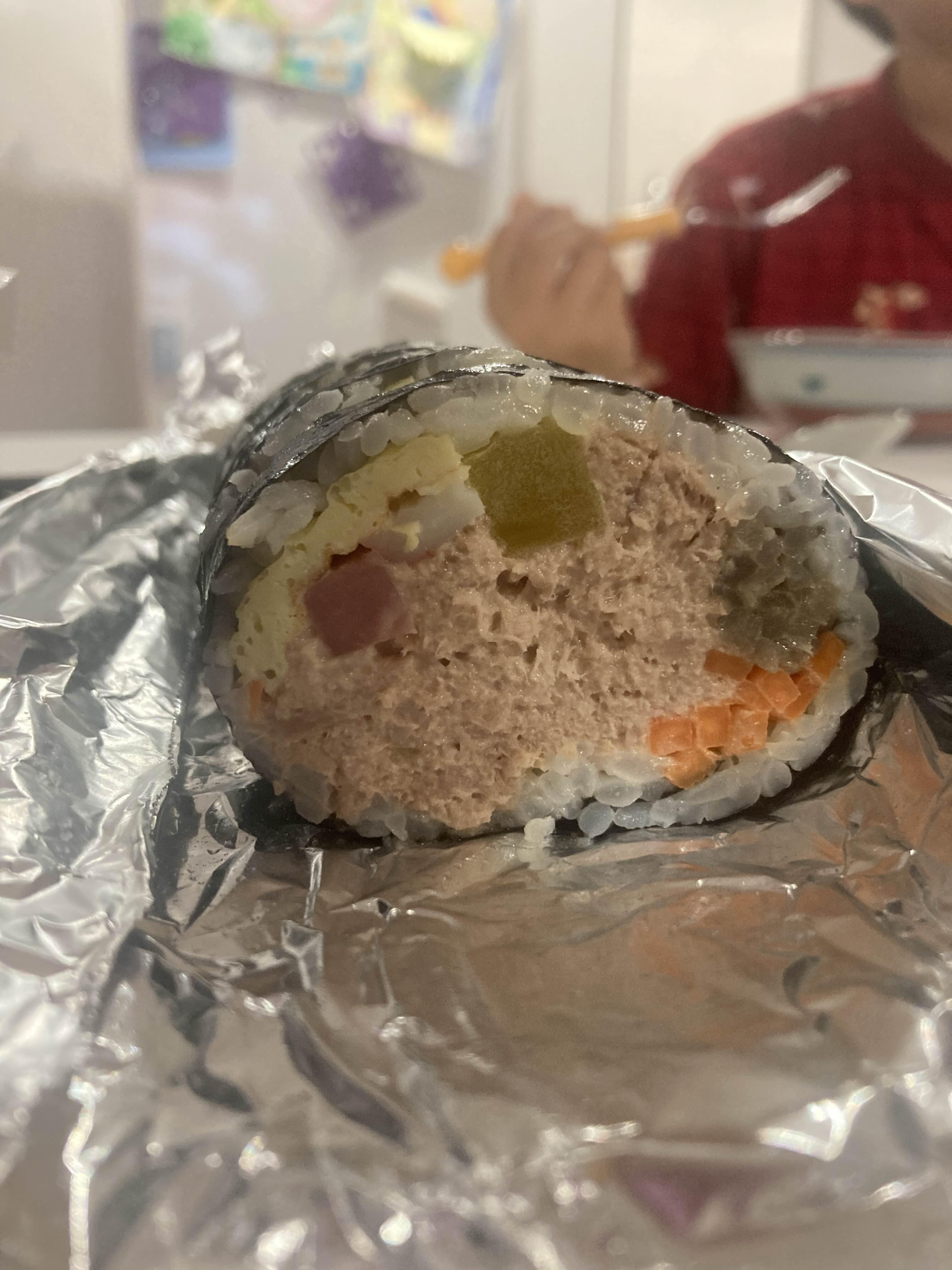 여기 참치김밥은 찐 입니다. 일단 김밥 자체가 엄청 두툼해요. 그리고 단면을 보시면 참치가 80% 이상 차지합니다. 진짜 아김없이 팍팍 넣어 주셔서 참치김밥 한줄만 먹어도 든든해요. 참치가 많이들어가서 그런가 맛도 진짜 좋습니다. 여기 참치김밥 먹으면 다른곳에서 참치김밥 못먹어요 ㅎㅎㅎ