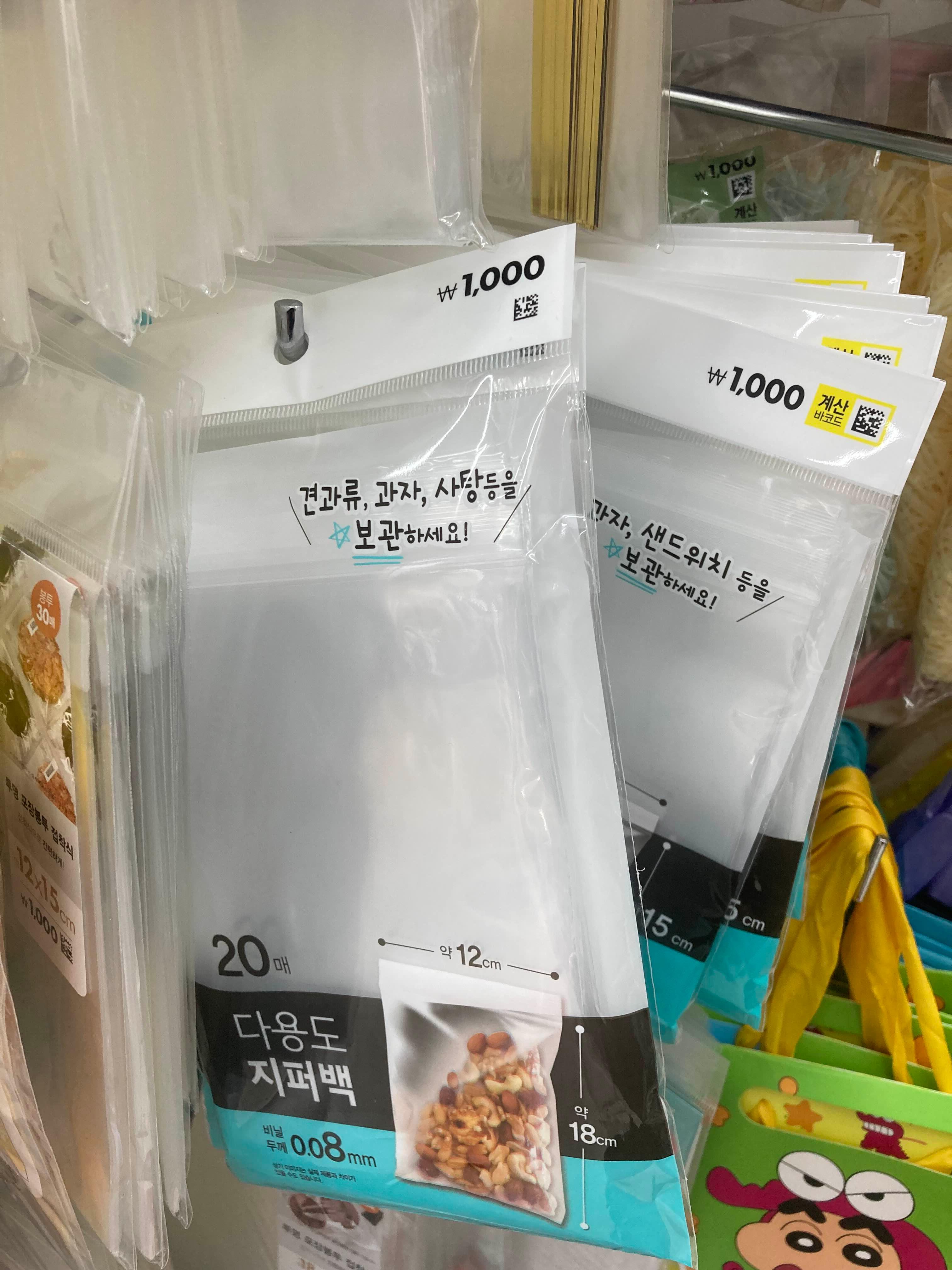 그럴때는 다이소로 가시면 됩니다. 다이소에는 다양한 크기와 종류의 봉투와 지퍼백이 있습니다.