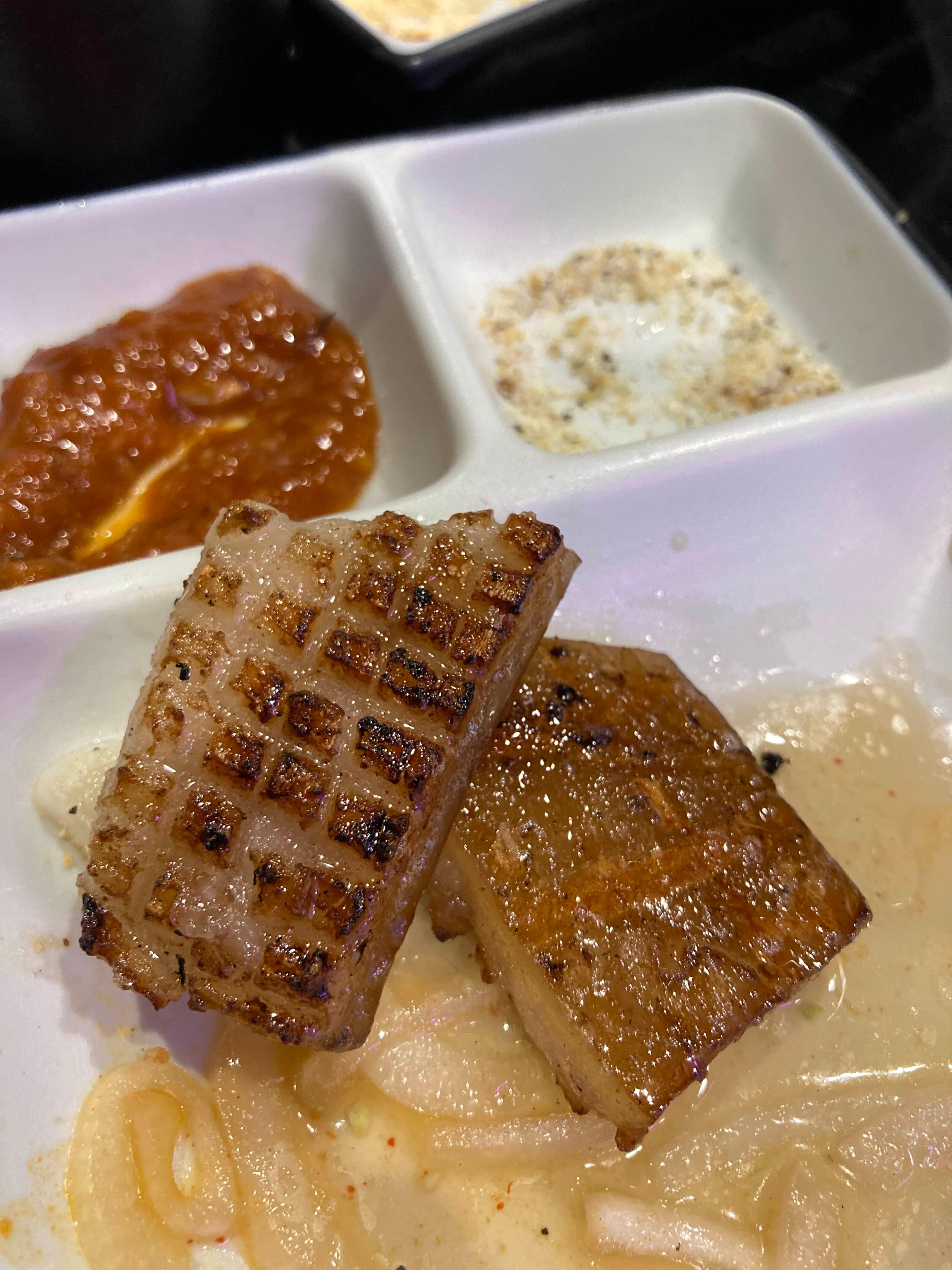 차돌은 바로바로 구워지니 먹기 너무 좋았고, 차돌에서 떨어지는 기름에 숯불이 반응하여 불맛까지 추가되는 두배 맛있는 고기를 느낄수 있습니다. 껍대기도 바삭하고 쫄깆하게 구워집니다. 우리가 먹고 싶어하고 상상하는 돼지껍대기를 이곳 꿀돈에서 먹을수 있어서 행복했습니다.