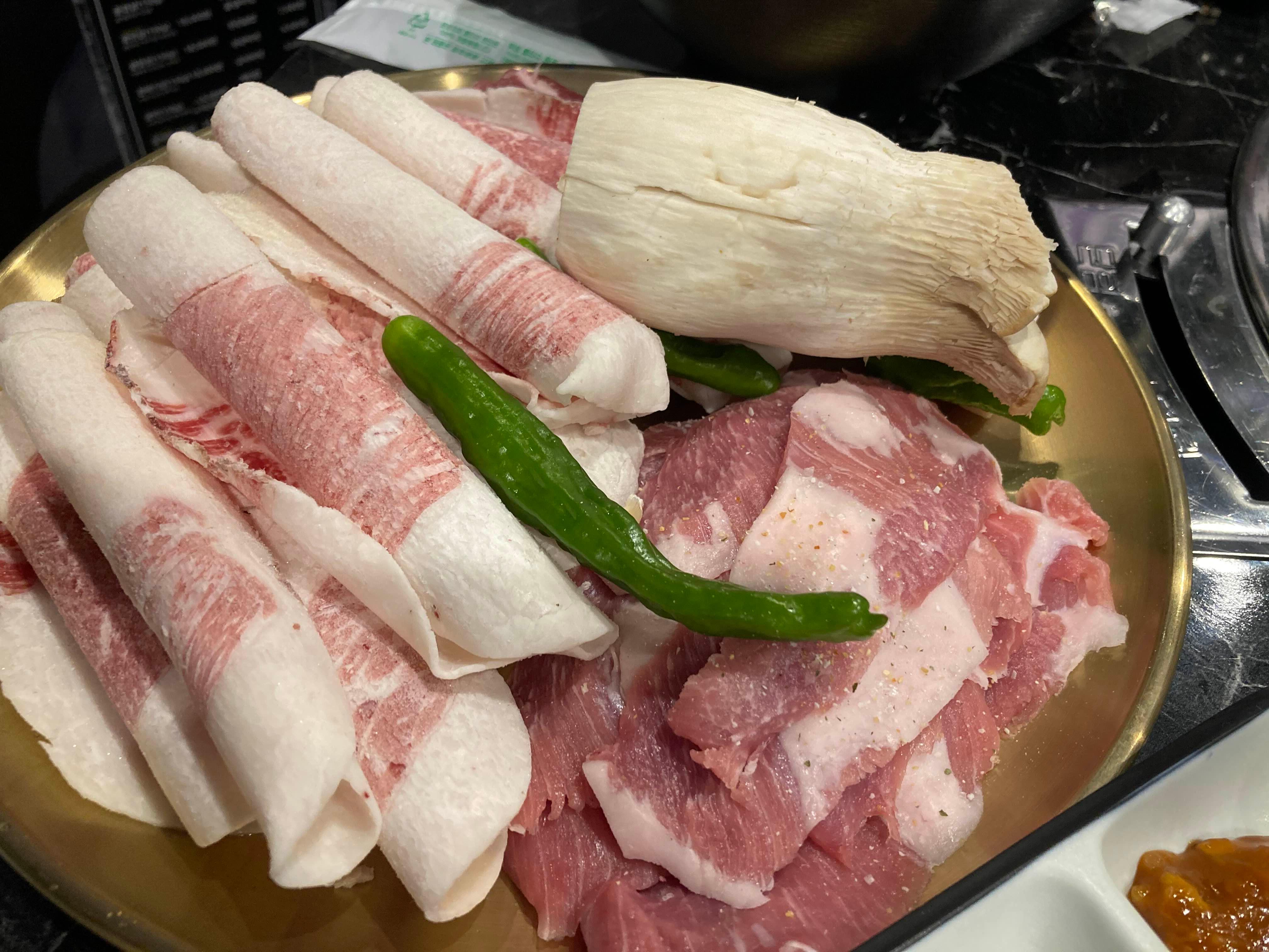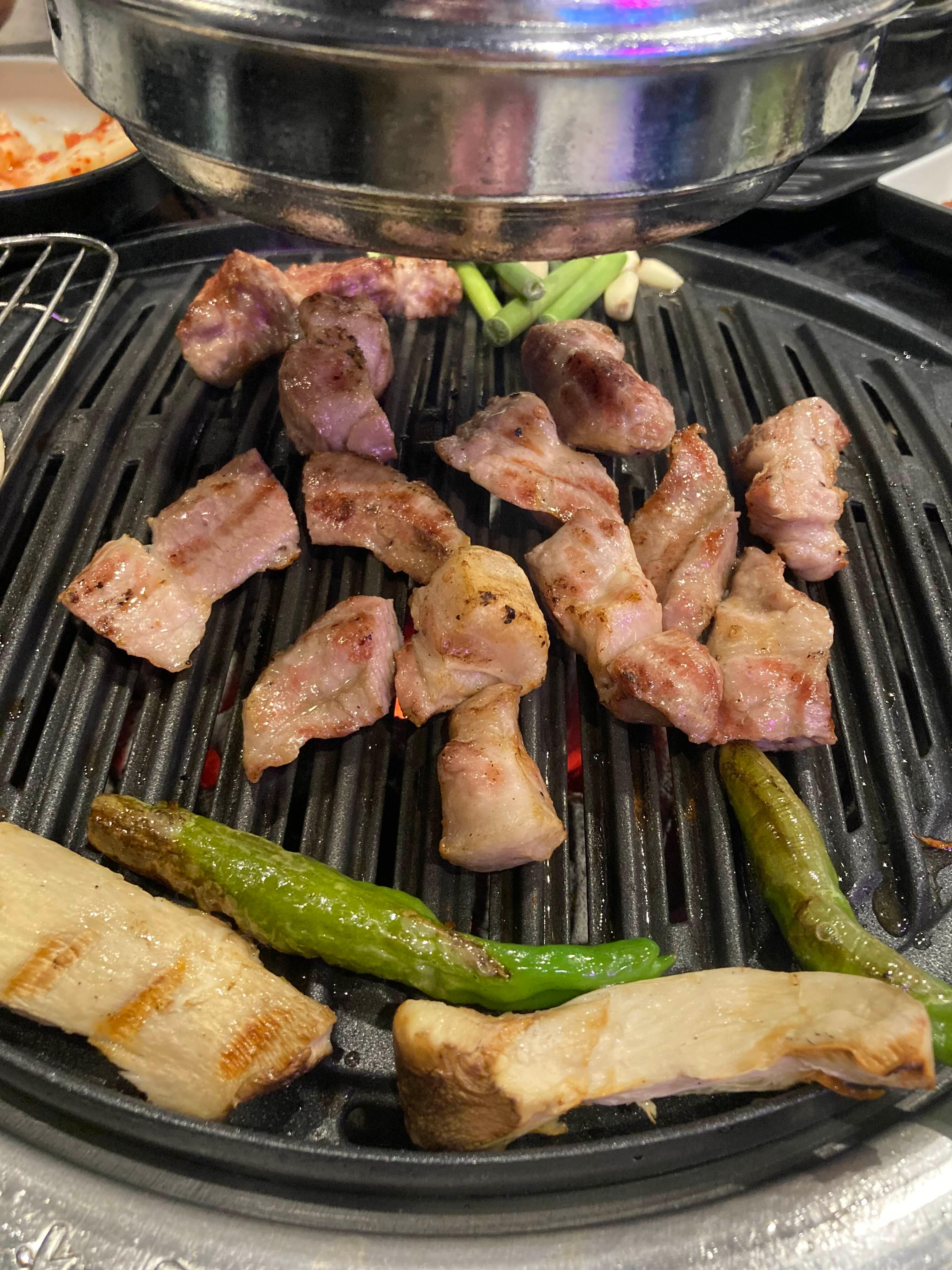 아래 사진 보시면 구워지는 고기가 정말 맛있어보입니다. 그리고 버섯과 꽈리고추도 고기 기름에 맛있게 구워지네요.