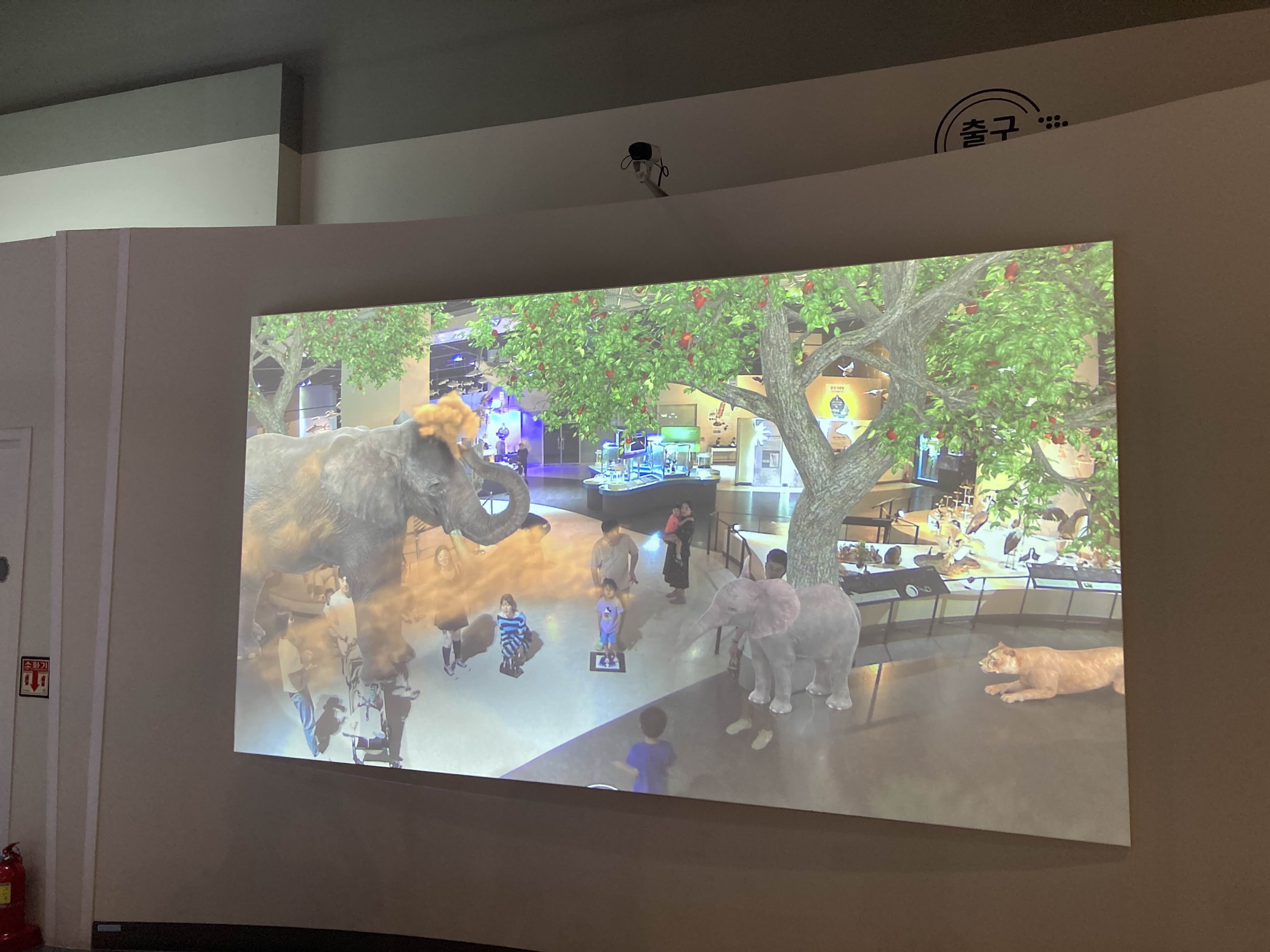카메라에 비친 우리의 모습에 동물들이 나타나서, 또는 공룡이 나타나서 움직이고 있습니다.