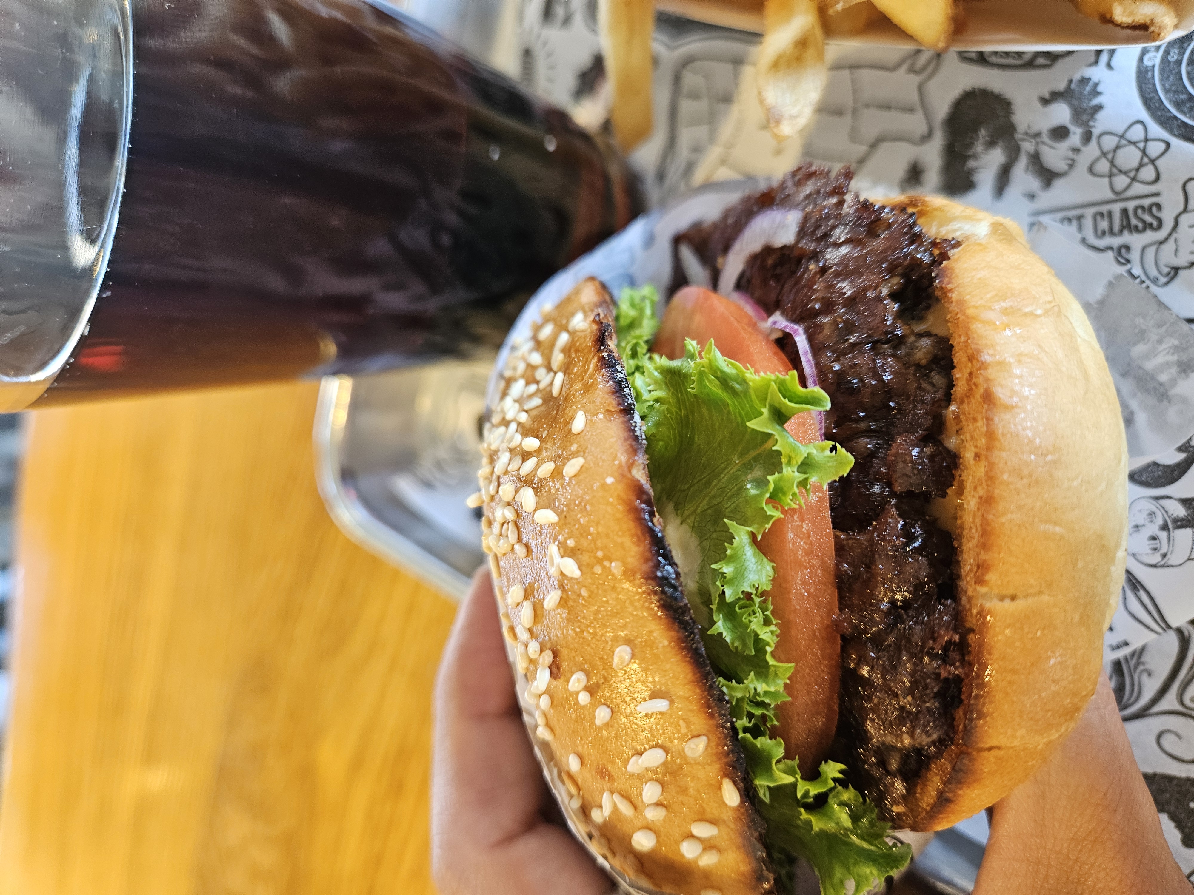 진짜 많은 사람들이 매장에서 햄버거를 즐기고 있어요. 가성비 가장 좋은 햄버거입니다. 맛도 좋아요.
